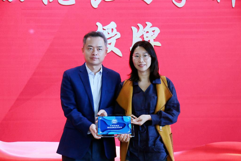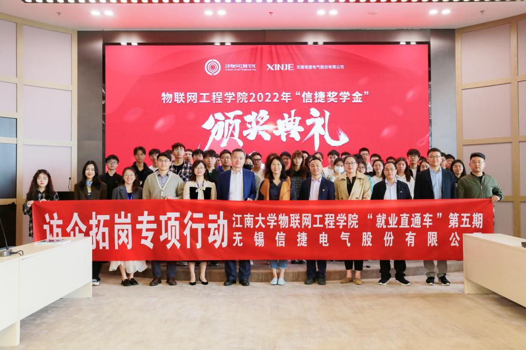 座谈会上,院企双方就人才培养、产学研合作、实习就业等方面进行深入交流。现场举行了2022年度“信捷奖学金”颁奖暨江南大学大学生就业“最佳战略合作伙伴”授牌仪式,李新等为获奖学生代表颁发证书,栾小丽代表学院向无锡信捷授牌“江南大学大学生就业最佳战略合作伙伴”。