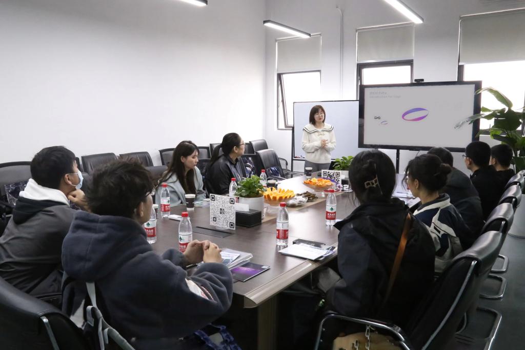 一行表示热烈欢迎,市场经理周英杰从公司发展历程切入,围绕业务体系布局、创新研发方向以及未来发展规划三个方面,详细介绍了天青及新能源细分市场现状,还分享了公司在人才引进、培养和管理等方面的经验和做法。孔丽丹结合学院历史沿革,就本研学生规模、专业结构设置、人才培养举措等方面做重点介绍。她强调,学院注重推动专业人才培养内驱动力和行业联合培养外牵引力的多元协同,提升人才培养成效,学院各专业均与企业需求高度匹配,表达了推进校企双方产学研用、人才培养深度融合的愿望。