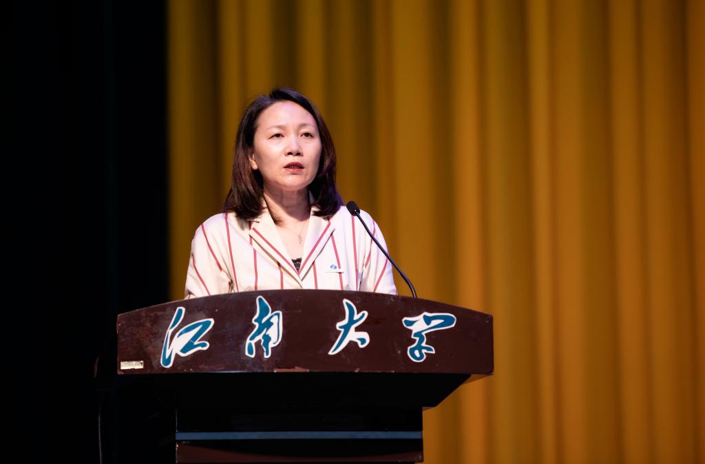 典礼结束后,本学期“听·院长说”系列活动正式开讲。院长谢林柏作《奋进成就未来》专题分享。他以学校的历史沿革为切入点,将学院的发展历程向大家娓娓道来。他指出,江南大学的发展、巅峰国际