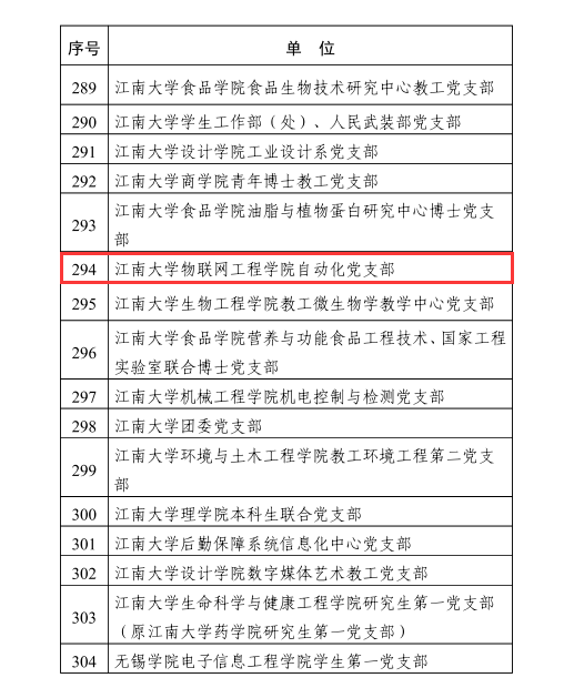 自动化党支部现有教职工党员44名,支部党员学历层次高,高级职称占比86%,博士学位占比95.5%;支部党员干部多,副处及以上双肩挑干部3名。支部在学院党委的领导下,以江南大学首批“双带头”教师党支部工作室建设为契机,创新“三坚持三提升”工作方法,不断提高党建工作科学化水平,充分发挥支部主体作用,努力成为教育党员的学校、团结群众的核心、攻坚克难的堡垒。近年来,支部在“双带头人”支部书记培育、加强教师思想政治工作、促进学校及学院事业发展等工作中做出突出成绩,先后获批江苏高校优质党支部、江南大学示范党支部、江南大学首批“双带头人”教师党支部书记工作室,两个专业均获国家级一流本科专业建设点,先后有11人次获得江苏省“333工程”科技带头人等省级人才称号。