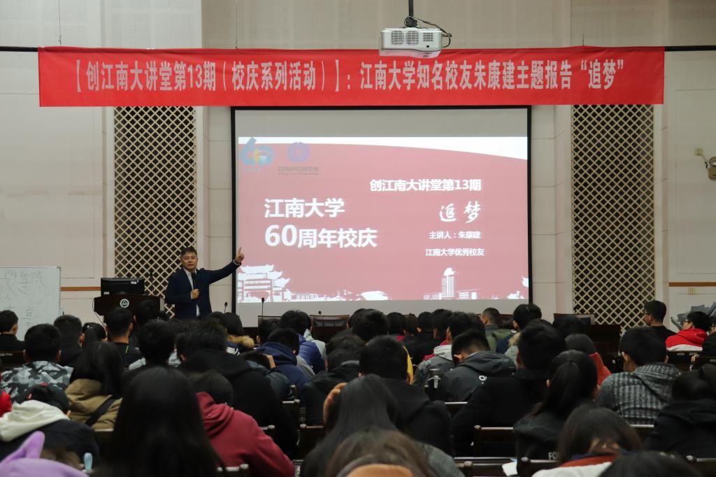 成功举办。本次活动邀请到江南大学知名校友朱康建先生作了题为“追梦”的主题演讲。巅峰国际