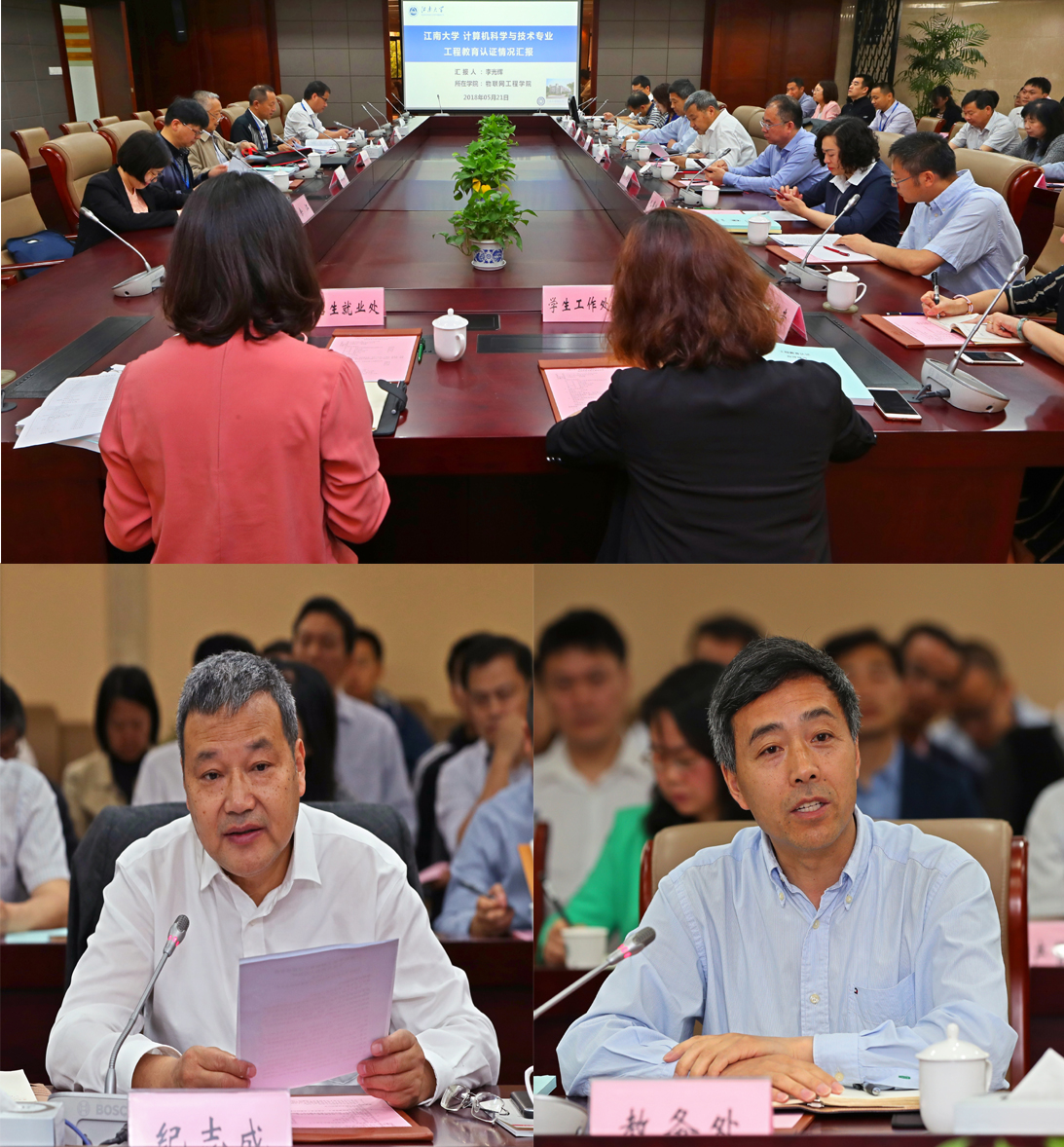 见面会上,纪志成代表学校热烈欢迎各位专家的莅临指导,并向专家们介绍了学校的办学概况和工程教育认证的总体情况。他指出,专家组此次入校对计算机科学与技术专业的工程教育认证进行实地考察,是对计算机科学与技术专业基于产出人才培养的一次全面检查,对于提高计算机科学与技术专业的人才培养水平乃至整个学校的办学水平都具有重要意义。专家组组长周明陶介绍了考查目的,强调了考查重点。计算机科学与技术专业责任教授李光辉从专业情况、自评说明、持续改进等三个方面对自评报告作了补充说明。专家组成员针对吸引优秀生源、学生学习指导、专业培养目标、毕业要求达成度评价、课程体系建设等方面的问题进行了现场提问,学校相关职能部门负责人、专业责任教授等做了一一解答。
