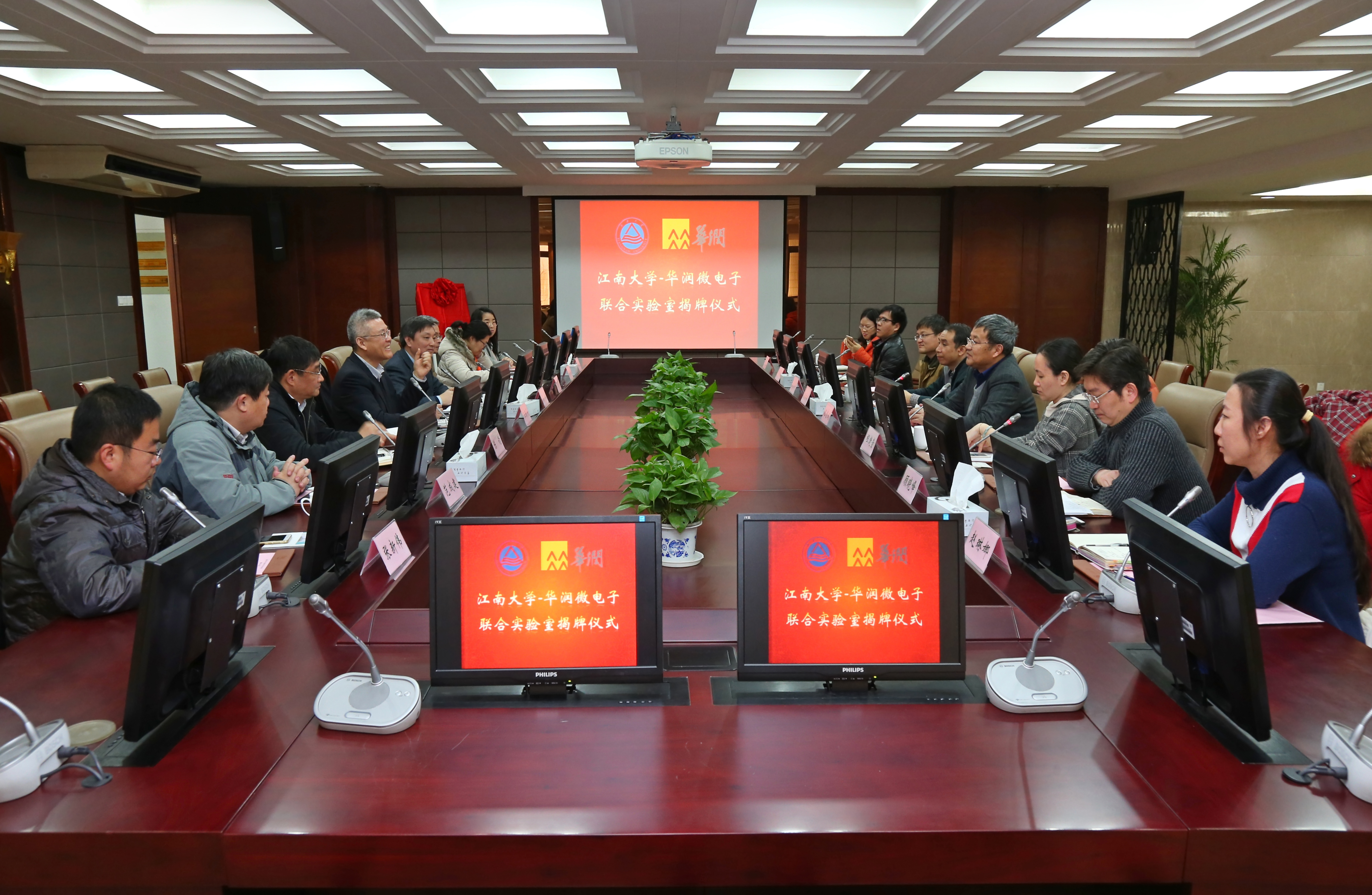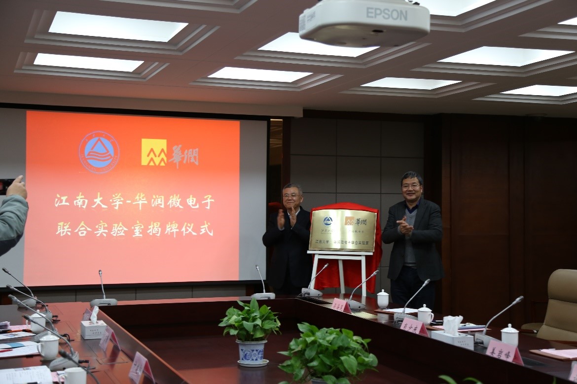 2018年1月17日,“江南大学-华润微电子联合实验室”揭牌仪式在行政楼B305会议室举行。华润微电子专家委员会主任、华润微电子执委王国平,研发中心副总经理苏巍等华润微电子代表;以及江南大学副校长纪志成,巅峰国际