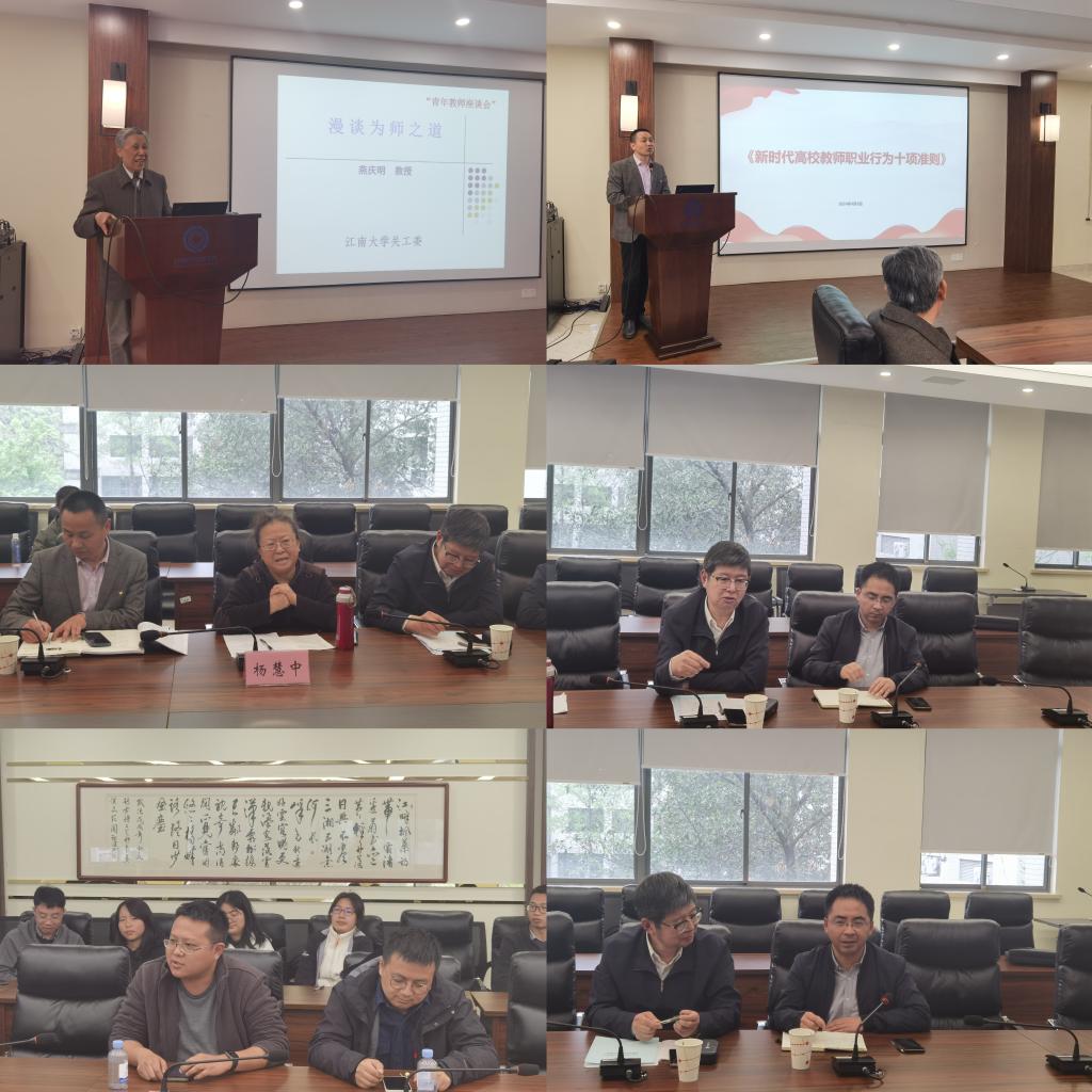 在b222会议室召开青年教师座谈会。校关工委副主任燕庆明,院关工委青年教师导师杨慧中、院教学督导于力革、院党委书记耿向阳、副院长陶洪峰、学院青年教师20余人参加座谈会,会议由陶洪峰主持。