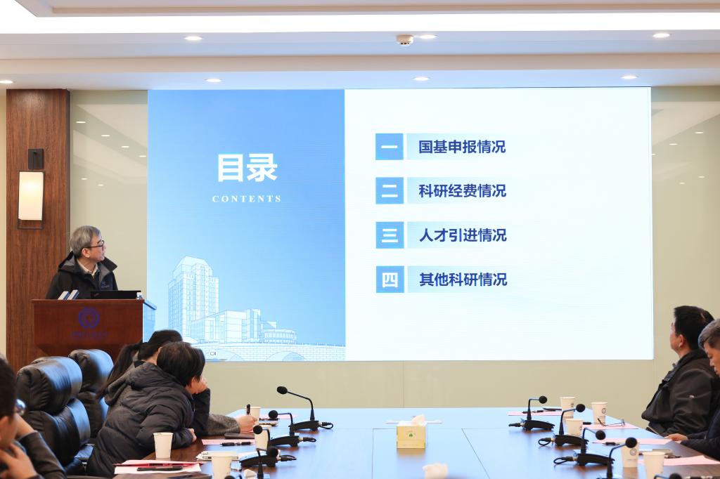 学院各团队负责人分别从国自然申报立项情况、科研经费情况、人才引进情况、其他科研工作情况等几个方面作交流发言。
