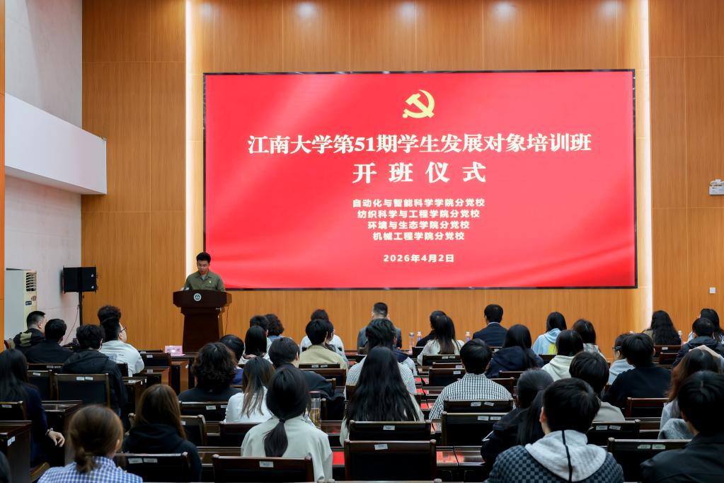 为增强学生发展对象思想认识与理论素养,4月2日,自动化与智能科学学院(物联网学院)、纺织科学与工程学院、环境与生态学院、机械工程学院联合举办第51期学生发展对象培训班开班仪式,本期培训班由自动化与智能科学学院(物联网学院)承办。自动化与智能科学学院(物联网学院)党委书记张华,纺织科学与工程学院党委副书记、副院长王恒,环境与生态学院党委副书记、副院长胡娟,机械工程学院党委副书记、副院长刘升恒以及各学院培训班班主任出席此次开班仪式。