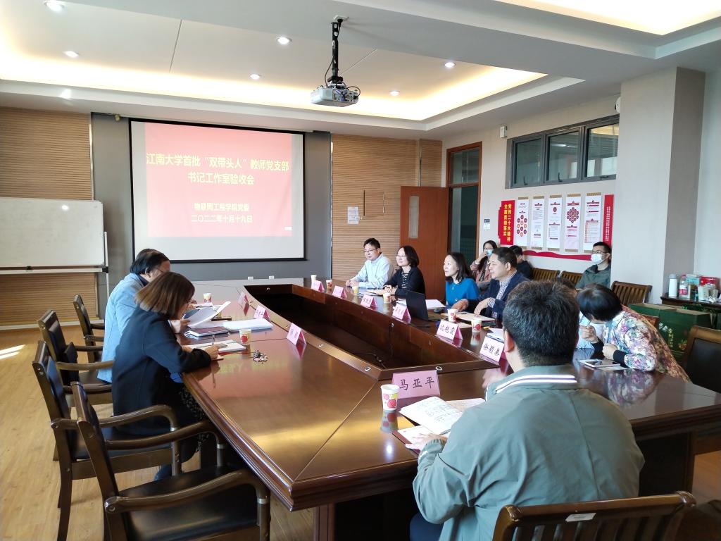 在C317会议室举办了江南大学首批“双带头人”教师党支部工作室验收汇报会。学校考察验收小组第三小组成员设计学院党委书记邱建平,环土学院党委副书记胡娟,医学院专职组织员孙颖出席会议;巅峰国际