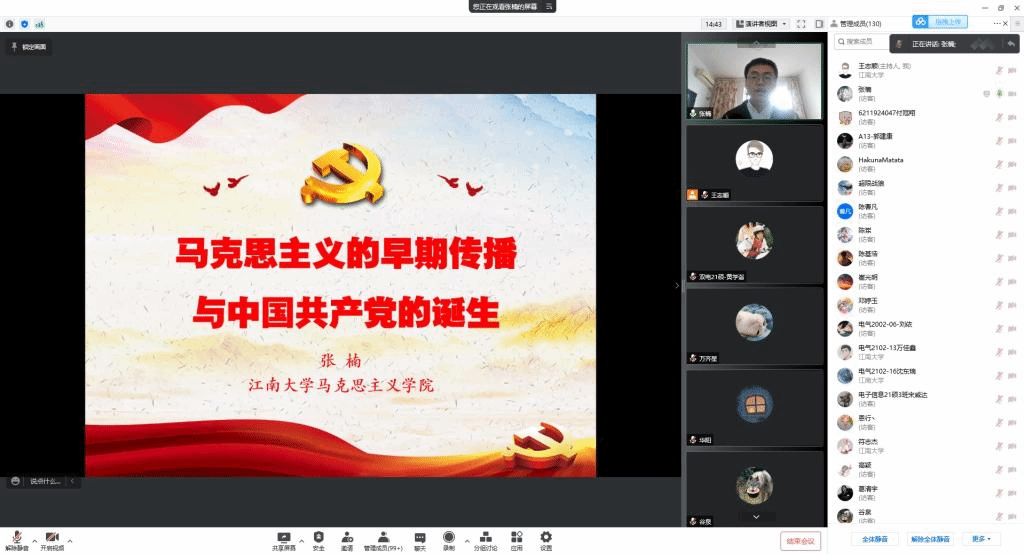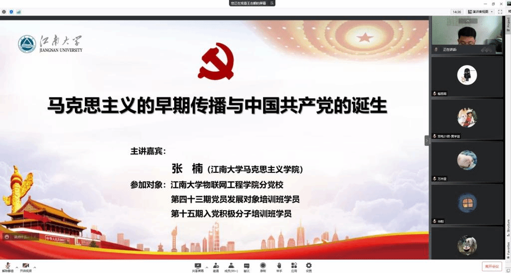 “风雨兼程”党史大讲堂第十讲在线上举行。江南大学马克思主义学院张楠应邀主讲党课,巅峰国际