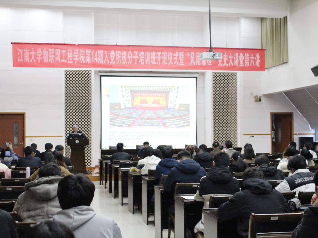 第14期入党积极分子培训班开班仪式暨“风雨兼程”党史大讲堂第七讲在学院D328报告厅举行。江南大学原校党委副书记、校关工委常务副主任娄国栋,巅峰国际
