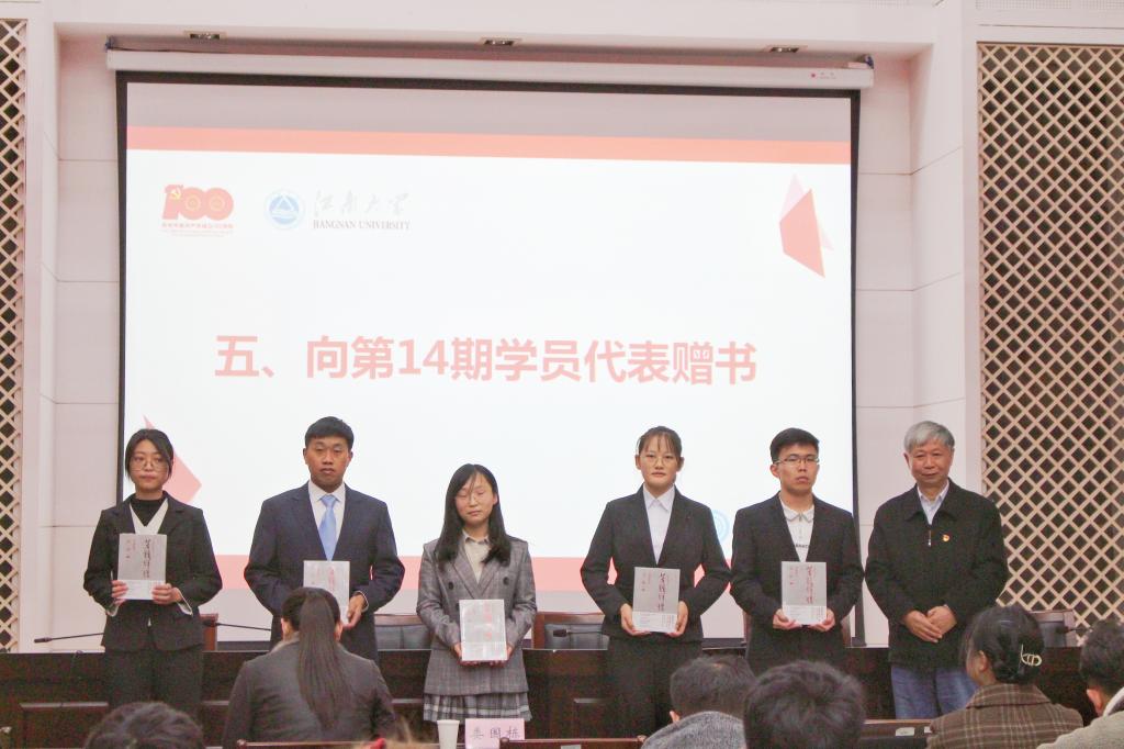 活动伊始,参会人员一同观看微视频“从红船到巨轮”,共同回顾了在中国共产党的领导下中国从红船变成举世瞩目的巨轮的辉煌历程。接着,孔丽丹为第13期优秀学员代表颁发结业证书、荣誉证书,娄国栋向第14期培训班学员代表赠送《苦难辉煌》一书,王志顺介绍了培训班培训计划。随后,江世鹏代表第14期培训班学员做表态发言,他表示将珍惜培训机会、提升素质能力,服从组织管理、遵守纪律规矩,纯化入党动机、发挥模范作用,将以更高的标准,更严的要求,更实的作风,更优的业绩,接受党组织和群众的考验,力争早日加入到党的队伍!