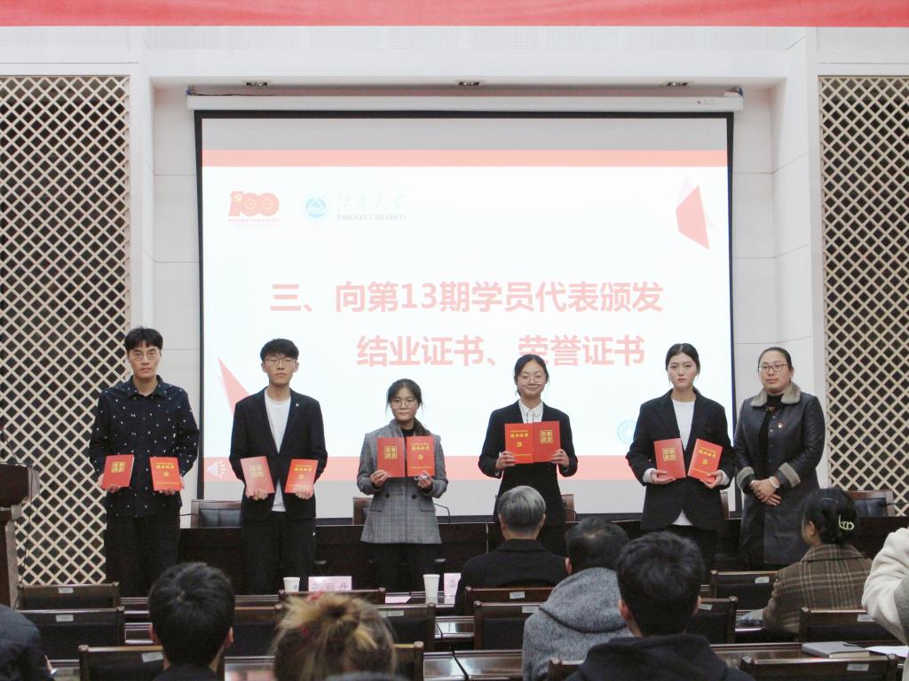 院党委副书记、副院长孔丽丹为13期优秀学员颁发证书