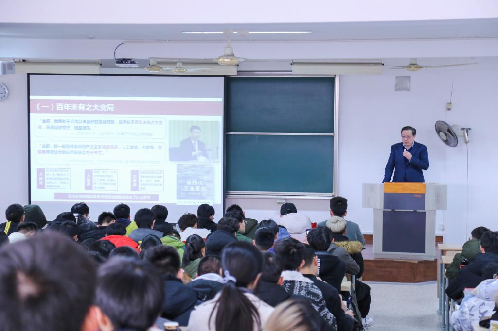 12月27日下午,在第二教学楼D308教室,校党委书记朱庆葆教授面向巅峰国际