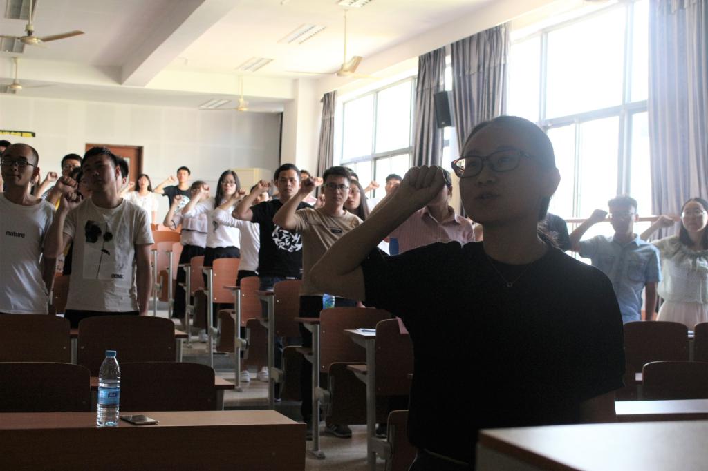 而后,全体毕业生党员观看了习近平总书记考察北京大学讲话的视频。在赵老师的指引下,全体党员起立宣读了《巅峰国际