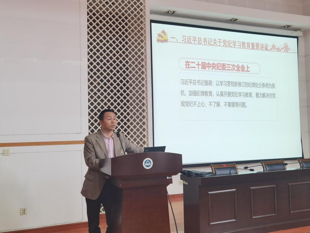 耿向阳在会上强调,全体党员要深刻认识开展这次学习教育的重要意义,把思想和行动统一到党中央决策部署上来,把纪律规矩的螺丝拧得紧而又紧,在纪律建设中把自己摆进去、把工作摆进去、把职责摆进去,更好地凝聚起干事创业的精气神。各支部要紧贴工作实际,丰富活动内容,把纪律教育融入日常、做在经常,让党员干部在潜移默化中增强遵规守纪的自觉,把从严管理监督和鼓励担当作为统一起来,营造干事创业的良好氛围。要坚持两手抓两促进,把开展党纪学习教育同落实党中央重大决策部署结合起来,同巡察整改落实、推动学院年度重点工作贯通起来,使党纪学习教育每项措施都成为促进中心工作的有效举措,为学院高质量发展提供坚强政治保证。