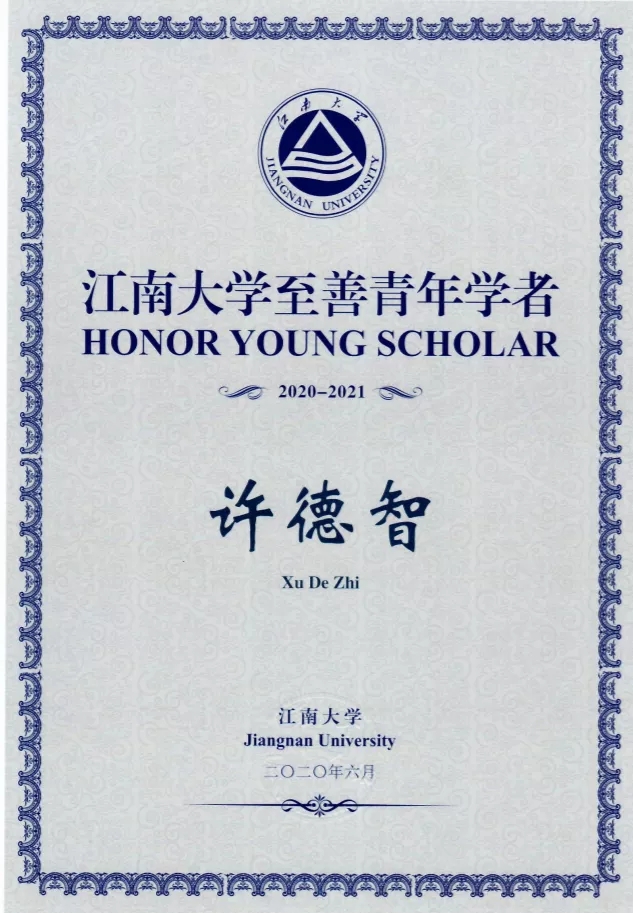 许德智老师获评江南大学2020-2021年度“至善青年学者”称号。