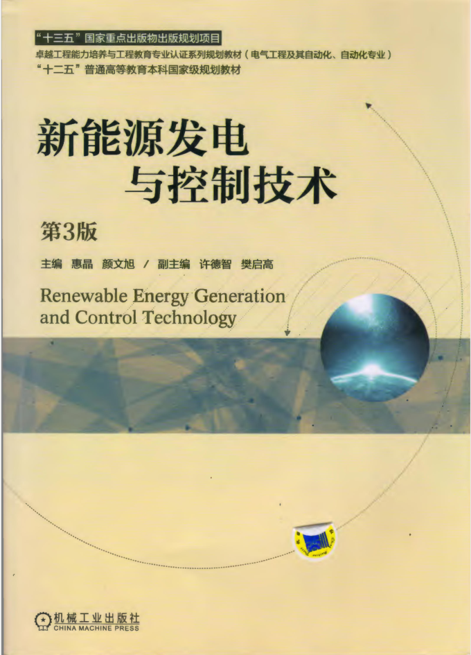 《新能源发电与控制技术》为“十二五”普通高校本科国家级规划教材、“十三五”国家重点出版物规划项目,由机械工业出版社出版发行。自2008年第1版以来,经历第2版及第3版,共计印刷17次,发行47800册;第3版自2018年出版已印刷8次,共计发行22300册。本教材是国内高等院校电气类、自动化类、能源动力类专业新能源发电与控制技术及相近名称课程的教材或教学参考的首选用书。