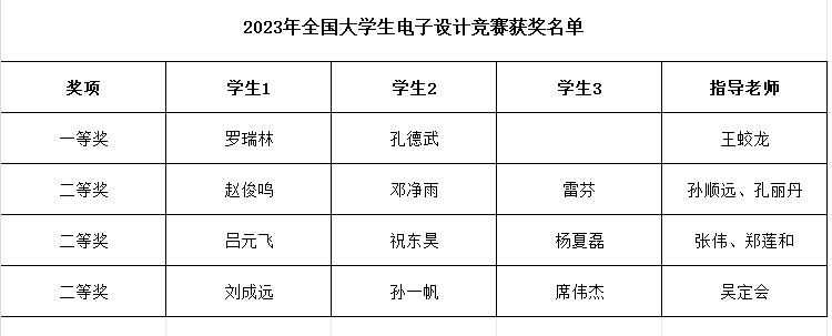 2023年全国大学生电子设计竞赛获奖名单(部分)