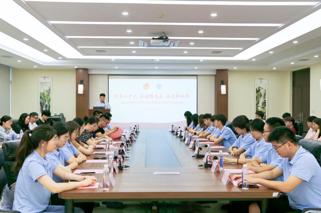 “学习二十大、永远跟党走、奋进新征程”2023年暑期社会实践出征仪式暨实践第一课在学院B222会议室顺利举行。学院党委副书记兼副院长孔丽丹、分团委书记洪筱、辅导员屈跃宽、2022年暑期社会实践优秀团队代表童志杰、李琨莹以及学院2023年暑期社会实践立项团队代表出席本次出征仪式。仪式由学院分团委副书记王志顺主持。