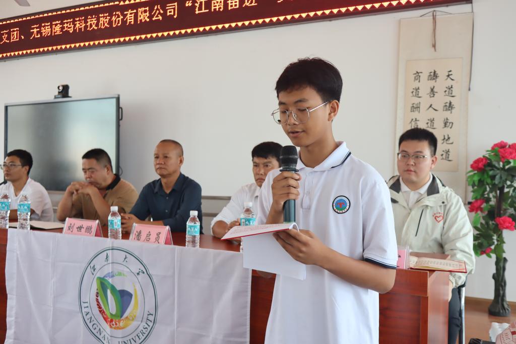 初三(209)班杨天豪同学作为获奖学子代表发表了获奖感言。他说道:“我们不仅要感谢无锡隆玛科技股份有限公司和研支团老师的无私奉献,更要把来自社会的关爱和老师家长辛勤的付出化作战胜困难的强大动力,以更加勤奋努力的姿态,不断追求卓越,成长为建设美好社会的栋梁之才!”