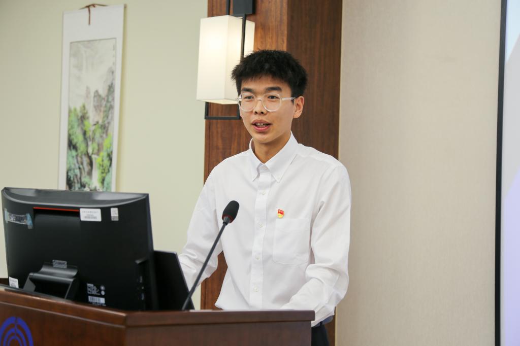 交流发言环节,博士生党员吴佳糠讲述了“半导体传感器件与集成电路研究团队”的青春奋斗故事,团队十年来连续攻克多款国产高端运存芯片和传感器关键技术,他们身上所形成的“芯火”精神让在场师生党员真切感受到新时代青年的责任与担当。硕士生党员段勤硕和本科生党员李世骏分别从个人和科创俱乐部角度出发,分享了在物联网大学生创新实践基地成长的心路历程,展现了广大物联学子“唯实”的精神气质。
