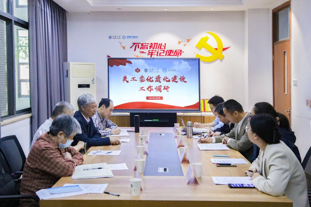 调研二级学院关工委优质化建设相关工作。学院党委书记、关工委名誉主任耿向阳,副书记兼副院长、关工委主任孔丽丹,关工委常务副主任吴锡生,分团委书记、关工委秘书洪筱及辅导员沈滔参会。会议由耿向阳主持。