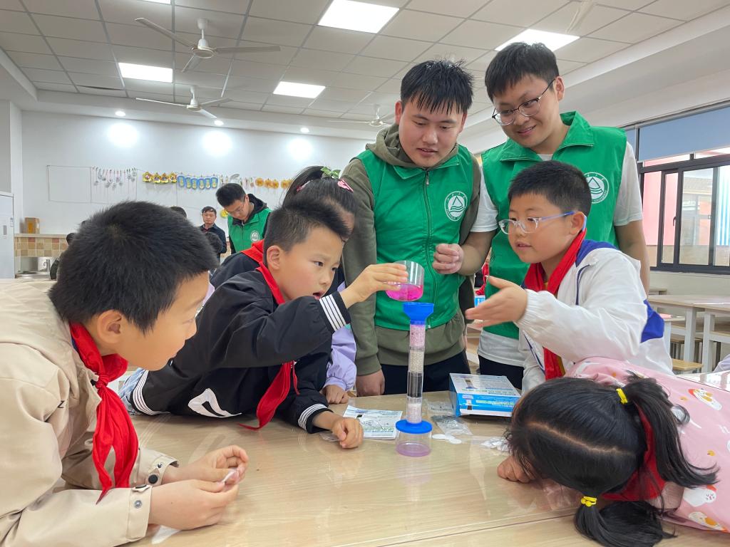为引导中小学生共同守护我们身边的水环境,江南大学汇思公益团面向无锡各幼儿园、中小学开展启智科普课堂系列活动,力求形成“大手拉小手”,通过课堂互动、实验教学、动手实践等方式,在引导孩子们树立生态文明保护意识的同时,加强思维能力、动手能力、表达能力、设计能力的培养。