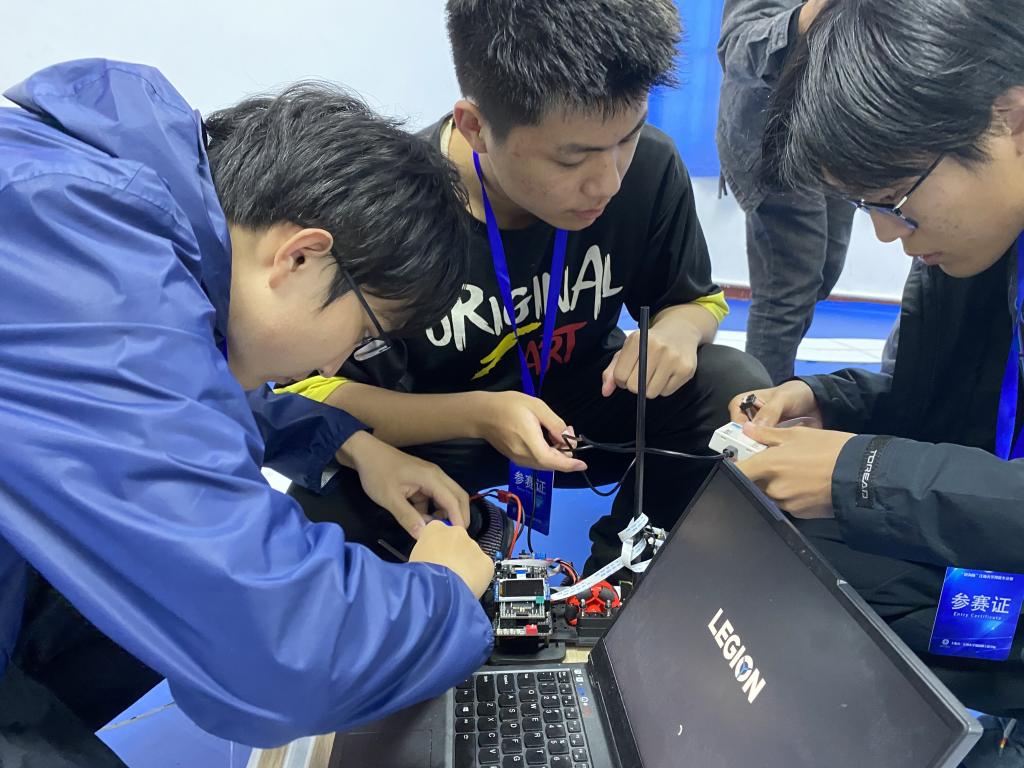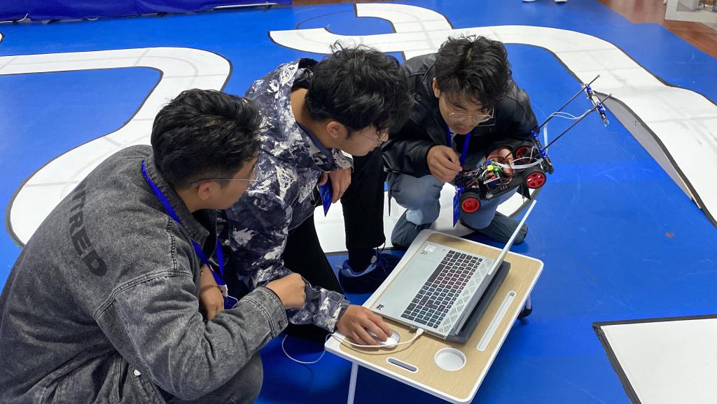 、机械工程学院、人工智能与计算机学院等学院的60余名学生,12支队伍进入决赛。本届大赛决赛的参赛组别包括负压电磁组、摄像头组、电能接力组、独轮车组、智能视觉组、急速越野组、单车越野组。负压电磁组打破常规思路,在车模下面安装负压风扇,降低车身重心,使车模具有更加强大的贴地运行能力的同时提高了速度上限;摄像头组则是将四轮车模改成三轮车模,在不失稳定性的同时具有更高的观赏效果;电能接力组则融合了去年的无线充电组和多车编队组的精髓,模拟真实救援场景,供电车辆自主定位停电车辆,对其进行供电救援;独轮车组的特点在于全新的独轮车模,复杂的平衡控制算法以及极高自由度的赛道行驶方案,为参赛队员提供了更大的发挥空间。