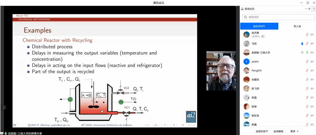 本次论坛中,轻工过程先进控制教育部重点实验室主任刘飞教授首先回顾了江南过程控制论坛的发展历程,感谢各位专家对江南大学控制学科的支持和帮助。随后,大连理工大学赵珺教授,华东理工大学钟伟民教授,中南大学王雅琳教授,东北大学付俊教授,IEEE Transactions on Cybernetics主编、澳大利亚Adelaide大学石碰教授,Control Engineering Practice主编、加拿大Alberta大学的黄彪教授,实时控制领域专家、IFAC(国际自动控制联合会)前任主席西班牙瓦伦西亚理工大学的Pedro Albertos教授,Sustainable and Resilient Infrastructure主编、美国伊利诺伊大学厄巴纳-香槟分校Paolo Gardoni教授等分别带来了精彩的报告。