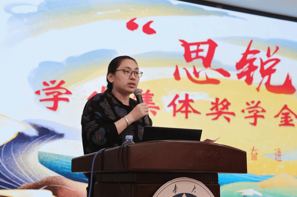 活动伊始,孔丽丹发表讲话。首先,她指出了学生集体奖学金设置的初衷,它是对学院原有的立体式榜样选树体系的补充,旨在深入挖掘学生团体的引领力量,使物联学子学有目标、做有标尺、赶有方向。随后,她分享了自身对于优秀学生团队的评价标准,一是奋勇争先,锤炼个人本领;二是互助互促,提高团队效率;三是以己及人,传递社会影响。其所凝练的精神特质,为学院日后更多先进集体的涌现、建设指明方向。