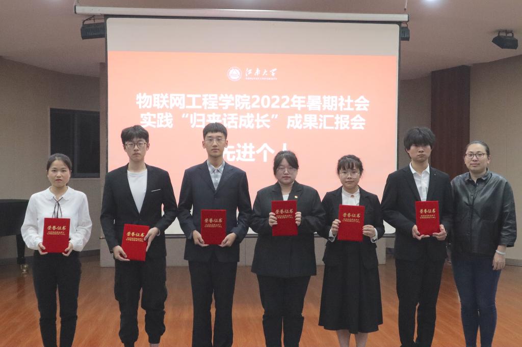 风采展示环节,汇思公益团等6支决赛队伍通过视频、PPT依次进行成果汇报。经过激烈角逐,汇思公益“返家乡”生态环境科普宣传中国行实践团荣获团队一等奖,江南大学“农情蜜意”乡村振兴实践团、“行走的环保小课堂”垃圾分类科普公益团荣获团队二等奖,“青春百年,‘常’学常新”常州三杰薪火实践团、“寻访红色印记 传承红色基因”党史学习教育实践团、“‘微’探索,寻‘芯’路”——走进无锡芯片企业暑期社会实践团荣获团队三等奖。潘瑶瑶等6位同学获得学院2022年暑期社会实践先进个人荣誉称号。现场嘉宾为获奖集体和个人代表颁发了证书。