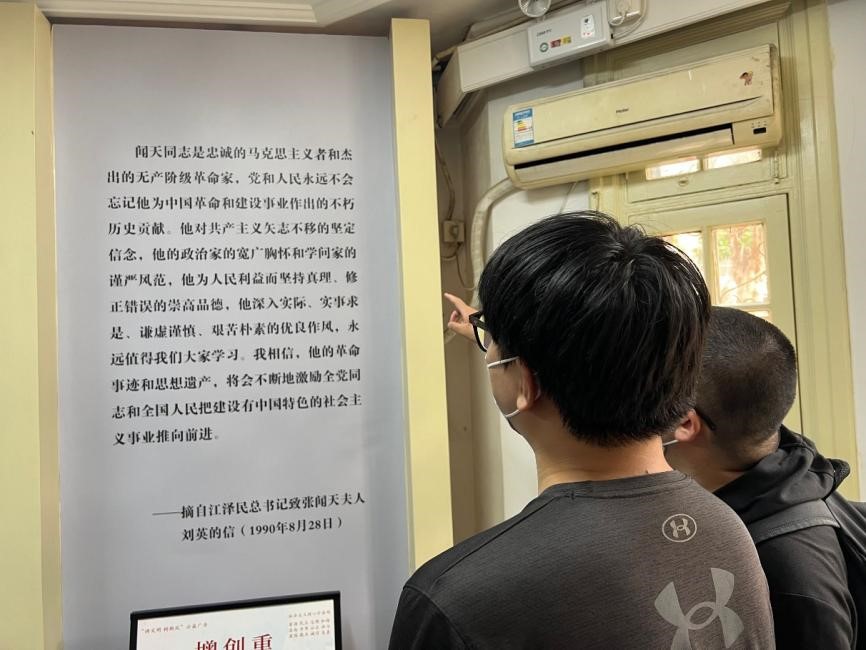 “在党的有生力量岌岌可危的时候,是张闻天带头站了出来,反对左倾主义,支持了毛泽东的正确主张,大部队才得以转危为安”,解说员语至此处,不由赞叹:“真乃挽狂澜于既倒,扶大厦于将倾啊。”支部成员们也深受感染,心潮澎湃久久不能平息。在“外交战线”展厅展柜中陈列的一件大衣吸引了大家的注意,这件大衣是由张闻天的侄子张昌麟提供的,张闻天生前的生活非常简朴,许多衣服都是打补丁的,而这件衣服是他为数不多没有补丁的大衣,所以他非常珍惜,只在重要场合才拿出来穿,当了解到这件大衣背后的故事,支部成员们都无不为之动容。从19岁,张闻天在“五四运动”期间走上街头投身南京学生运动,到76岁病逝前,张闻天满怀初心,为党和国家奉献余热。故居中一件件陈列的实物、一幅幅往昔的图片,无声地诠释着这位革命先烈为共产主义事业奋斗终身、至死不渝的决心和勇气。