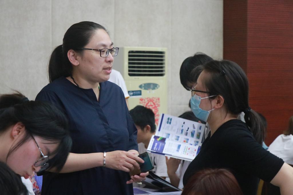 为推进“卓工计划”的顺利实施,学院积极与无锡市新吴区政府沟通协调,汇聚合力,携手30余家企业参加本次“卓工计划”双选招聘会。双选现场,孔丽丹详细询问了解各招聘企业提供的岗位数量和类别,与企业负责人进行交流,积极向企业推荐学院学生,同时向企业方发出秋招邀请。秦宁宁、吉训生全程在场,做好企业方的沟通协调工作,并为学生答疑解惑。双选现场人头攒动,气氛十分热烈。招聘活动持续近3个小时,学生通过面对面交流,进一步深化对意向企业和岗位的认知,近一半学生在现场签订协议。