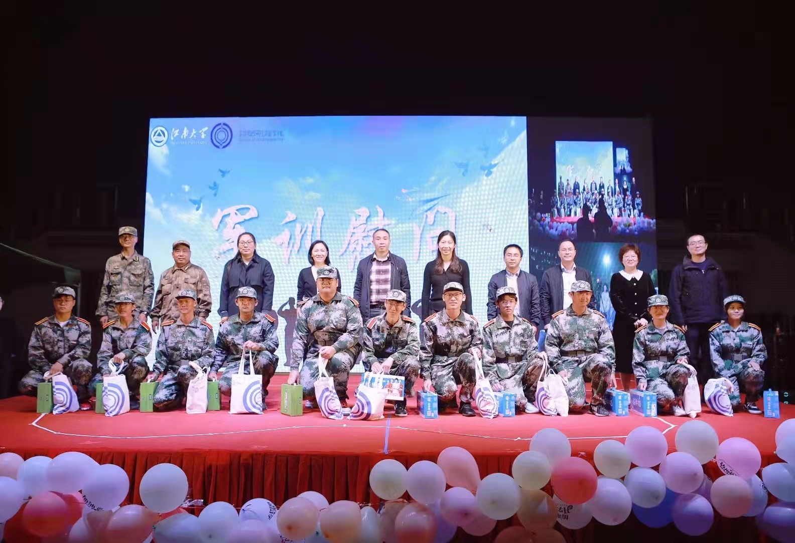 军歌嘹亮,响彻西北操场的深蓝天空,预示着晚会的结束。此次迎新晚会巧妙地将军训慰问、入学教育与风采展示相结合,独具匠心搭建草地舞台,通过校院两级视频号、抖音进行网络实时直播,不仅增强了物联学子的凝聚力、战斗力及爱校荣校感,更表现出青年大学生不断进取、持续奋斗的优秀精神风貌。歌声、口号声、踏步声响彻训练场之上,今后物联学子必将以更饱满的姿态、更昂扬的斗志与新时代同向同行。