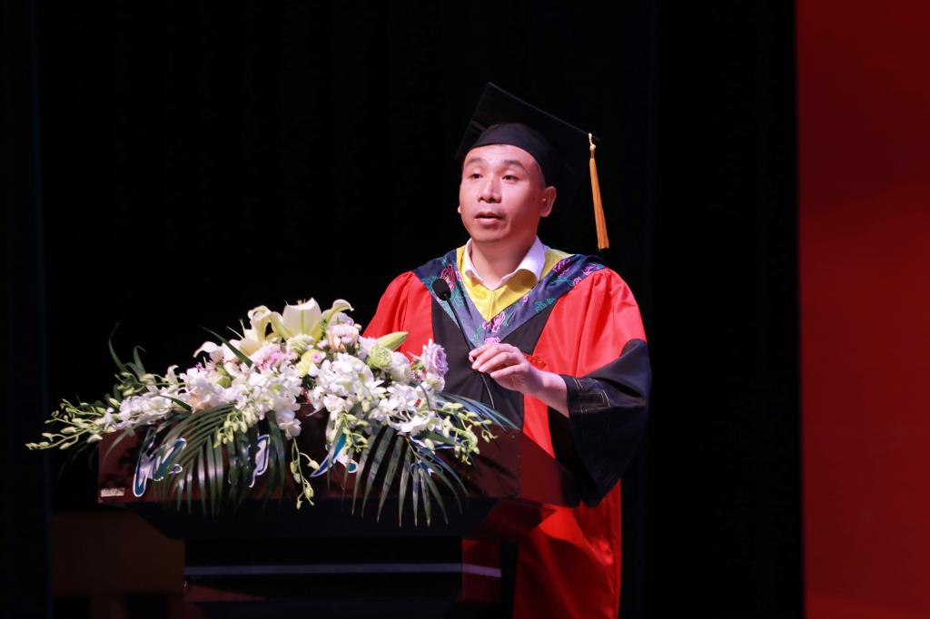 1991届电子系自动化专业毕业生李新作为优秀校友代表发言。他结合自身的求学经历及职业发展历程,寄语毕业生要坚守“心怀家国”的胸襟情怀,以担当砥砺强国之志,把个人抱负融入伟大事业中;要坚守“久久为功”的平和心态,以笃志力行的态度不断积累沉淀,脚踏实地从本职做起,从细节做起;要坚守“追求卓越”的奋发意识,以开拓进取的精神,不断在未来为实现个人价值、贡献社会、回馈母校不懈努力。辅导员、班主任代表李灿在发言中先是回顾了不平凡的四年中的重要考验和关键时刻,随后她寄语毕业生接受生活的平凡,用努力奋斗书写幸福的人生篇章;笑对人生的困难,用执著热爱描绘多彩的人生画卷。情深意长的发言赢得了在场的阵阵掌声。