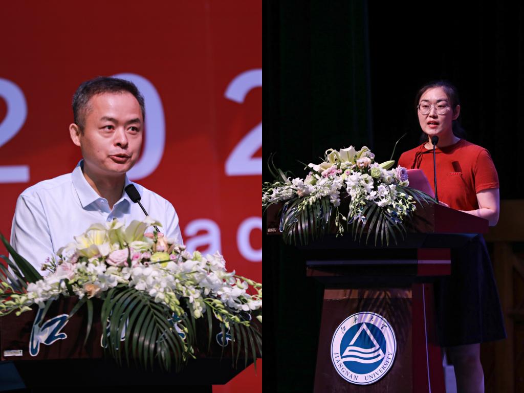 最后,谢林柏代表全院师生寄语毕业生。在讲话中,他首先赞扬了2021届毕业生中涌现出的大批先进个人和优秀集体,学霸班级、学霸宿舍以及不胜枚举的科研学霸、竞赛达人、志愿之星,他们共同又一次缔造了带有“江南印记”的“物联传奇”。随后,他结合中国共产党成立100周年的重要历史时刻,以及习近平总书记在清华大学考察时的讲话,从“青春正当时,担当方能诠释青春本色”“青春正当时,行动方能支撑青春自信”“青春正当时,奋斗方能永葆青春活力”三个方面与全体毕业生分享了对青春的理解。他希望同学们牢固树立“铁肩担道义”的社会责任感,在担当中历练,在尽责中成长;牢记空谈误国、实干兴邦,争做有理想的青年,用行动支撑自信,用实干成就未来;牢记无奋斗、不青春,撸起袖子、甩开膀子、迈开步子,奋勇向前、永不气馁,让奋斗成为青春最亮丽的底色。