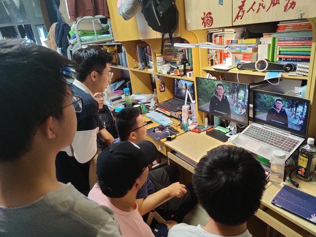 同学们在宿舍观看“同上党史思政大课”