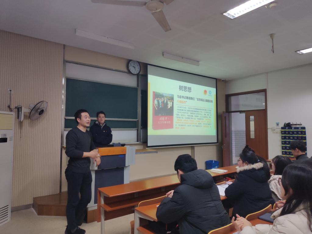 主题团日活动前,团支委组织大家自主阅读《习近平与大学生朋友们》一书,并结合“大学生如何正确看待内卷现象”这一主题鼓励大家积极思考。团日活动安排在12月17日课间时间,团支书朱逸鹏主持活动,自动化1905团支部共同参加,分团委书记吴垚、辅导员兼班主任陆奕君列席活动。