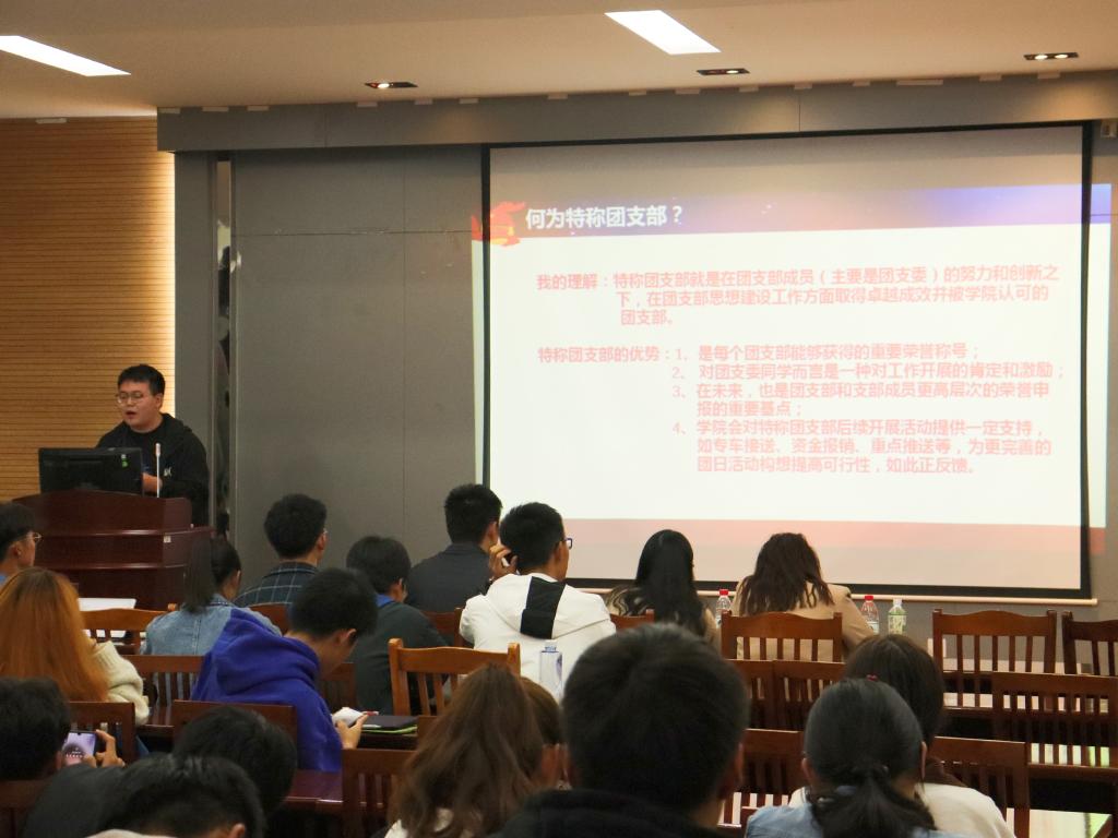 各支部答辩结束后,霍雷霆作为自动化1804班雷锋特称团支部、江南大学标兵特称团支部团支书向大家介绍了争创特称团支部的意义与责任,与大家分享了团支部建设方面的宝贵经验,提供了丰富有效的活动建议和宣传意见。他呼吁在场的团支部勇担责任,不愧青春!