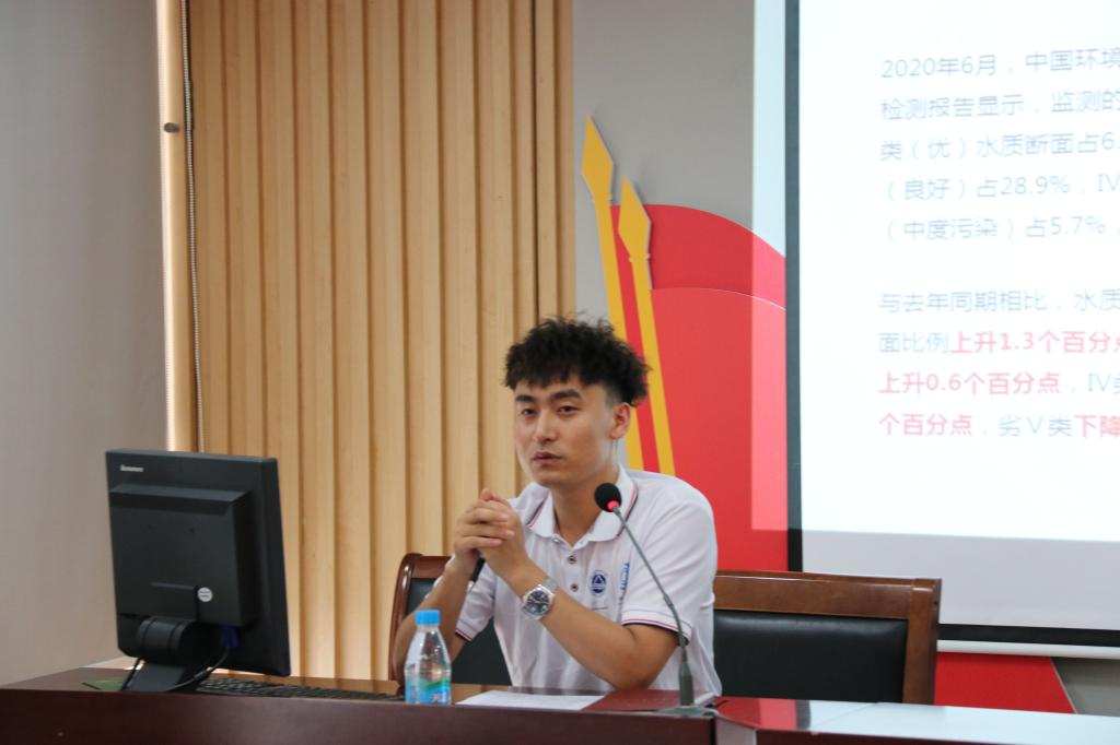 随后,江南大学生态文明建设实践团的宋鹏同学向参会人员进行了有关生态文明建设水治理的宣讲,介绍了当前我国水环境污染和治理的现状,对比分析了当前河道治理技术,并详细介绍了该实践团队自主研发的数字化河道水质监测平台,通过生物-生态治理技术对水环境进行有效治理,并通过传感器实时监测水质指数,以大数据、云平台进行数据处理和智能分析,为河道治理提供全面精准、及时智能的信息参考和问题诊断。