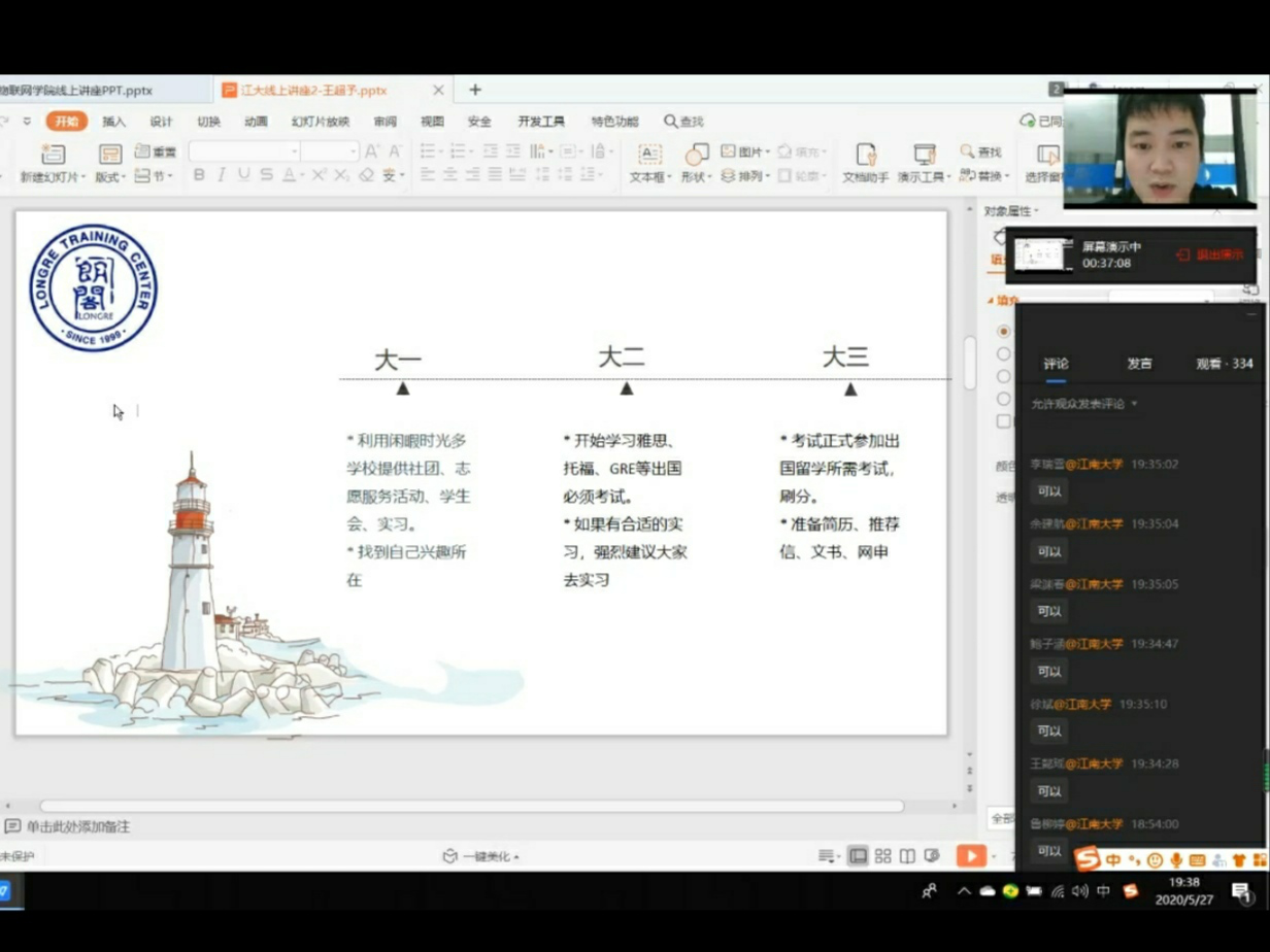 主办的唯实讲坛第56期,疫情后时代留学趋势变化通过网络直播成功举办,本次唯实讲坛由无锡维德教育科技有限公司执行董事徐珏女士和朗阁教育集团项目经理王超予先生主讲,巅峰国际