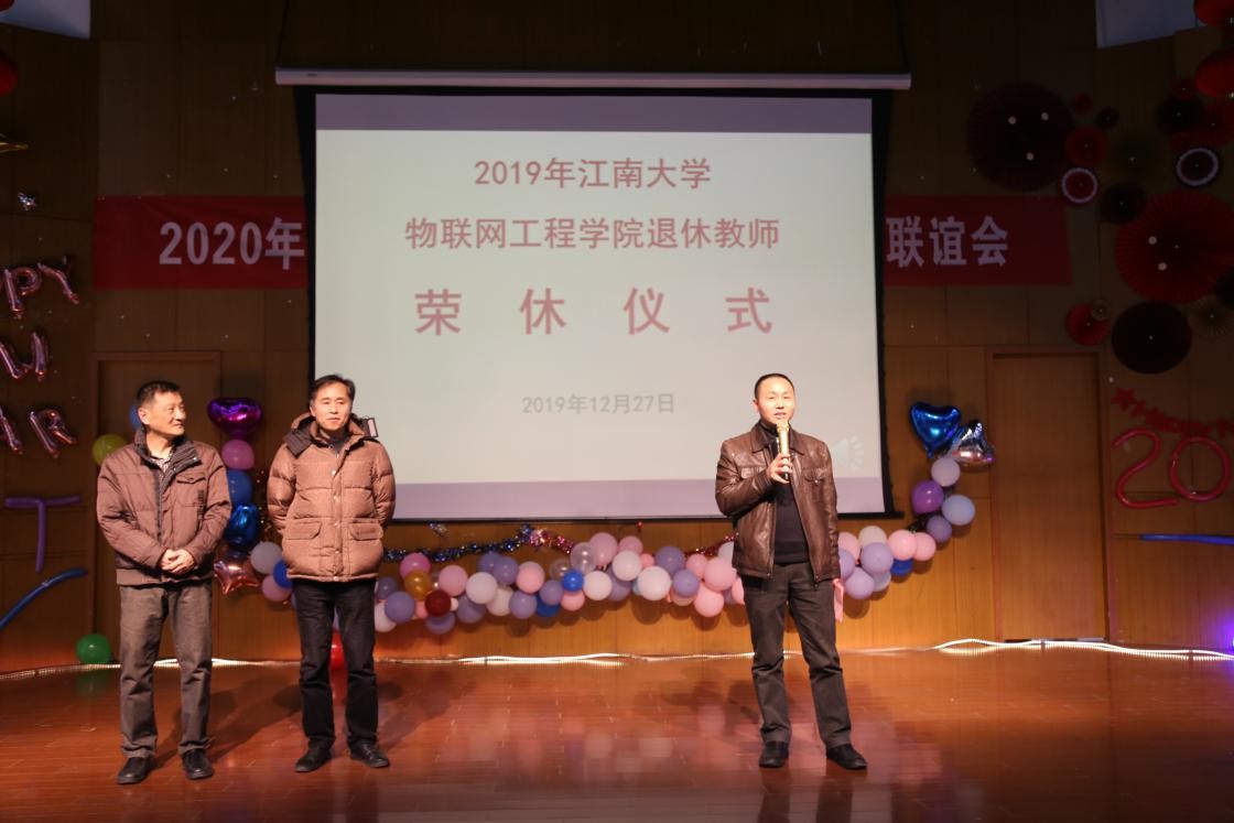 下午13:30分联谊会正式开始。首先由学院全体辅导员带来舞蹈《大梦想家》,老师们个个风姿卓越,楚楚动人,全面展现了学工团队的精神风貌;感怀师道,传承精神。2019年,执教近40年的邵康和张玮老师以及从教42载的钟传杰老师光荣退休。退休教师荣休仪式穿插在联谊会其中,学院院长谢林柏老师为荣休教师献花,学院党委副书记、副院长耿向阳老师为荣休教师致辞,他讲到:“三位老师把数十年的教研、管理的积淀留在了学校,把恪尽职守、甘于奉献的作风和品格留在了学校,岁老根弥壮,阳骄叶更浓,老师们的经验和成果是巅峰国际
