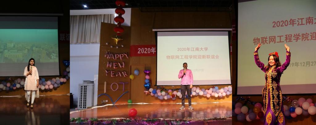 的发展和兴盛献计出力,也衷心祝愿荣休老师都能拥有一份清旷优雅的智慧、一副健康硬朗的身板”。计算机系的舞蹈《红枣树》,欢快的舞步充分展现了老师们的青春活力;联谊会上还有来自巴基斯坦的神秘嘉宾Kiran,她用英文介绍了她的家乡,同时带来一段异国风情的舞蹈;学院工会100%原创的诗朗诵《我和我的祖国》曾获得校教职工诗朗诵活动唯一一个一等奖,他们感情饱满,声情并茂,将联谊会的氛围推向高潮;第二位神秘嘉宾是来自印度的Sanjeevi,他用英文讲述了他来到中国后的故事;五十六个民族五十六朵花,少数民族辅导员麦日帕提·马热木老师带来新疆舞《达坂城的姑娘》,小麦老师优美的舞姿为节目锦上添花;全体新入职教职工齐唱《我和我的祖国》,共同为祖国送去美好的祝福;自动化系老师带来合唱《我的中国心》,歌声悠扬,委婉动听。整场联欢会一直在欢快、热烈的气氛中进行。最后由工会于主席宣布联欢会圆满结束。