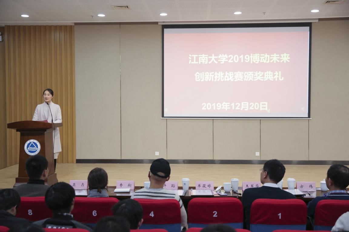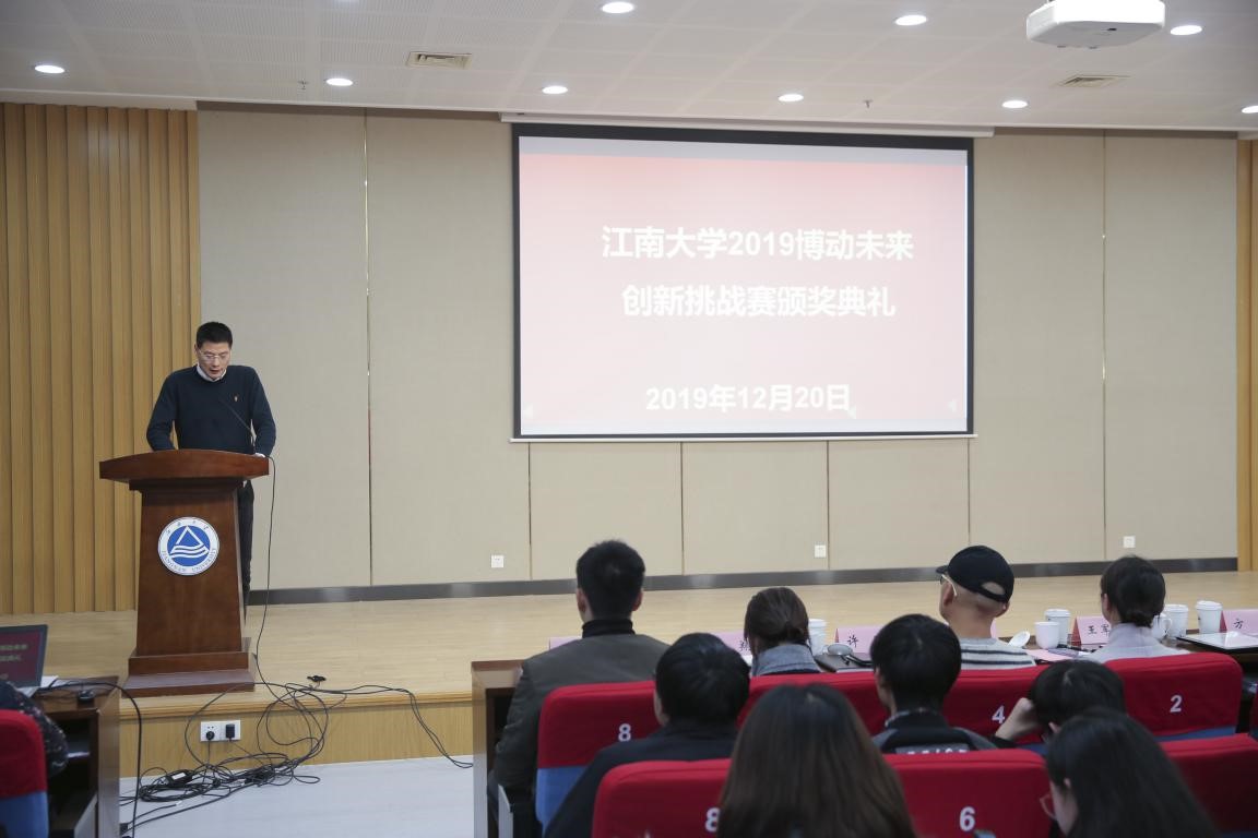 2019年12月20日,江南大学“博动未来”创新挑战赛总决赛暨颁奖典礼在图书馆三楼报告厅圆满落幕。江南大学计算机系主任方伟教授,博世汽车柴油系统有限公司技术总监王军华,博世汽车柴油系统有限公司共轨高压泵开发部总监李常骏,博世汽车柴油系统有限公司成本控制部总监许葆淳,无锡金点水视界传媒广告有限公司总经理、教育部万名创业导师库导师许蹈,江南大学学生工作部(处)副部(处)长单筱婷,江南大学团委副书记单云婷等7位专家学者担任总决赛评委。博世汽车柴油系统有限公司企业传播部高级经理费翔、巅峰国际