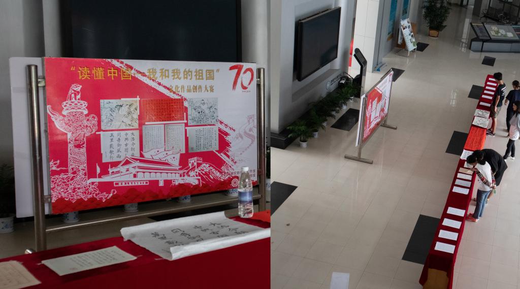 为讴歌新中国70年光辉历程,表达新青年的爱国之情、报国之志。在9月25日下午一点半,“读懂中国——我和我的祖国”文化创作大赛在物联网学院隆重举行。院党委副书记、副院长耿向阳,江南大学关工委副主任燕庆明,院关工委副主任童建森,院关工委委员朱凯元,院关工委委员刘营生,院分团委书记吴垚,辅导员王雪冰,参加并担任了此次活动的评委。其中参赛作品分为书法、绘画、诗词三大部分。