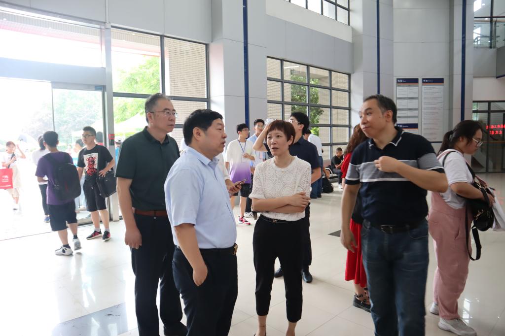 在迎新工作如火如荼地进行了一段时间后,校长陈坚携各职能部门领导莅临我院,代表学校欢迎新生并与新生及家长进行了亲切的交谈,现场氛围也一度达到了顶峰。我院党委书记程捷音,院长谢林柏,党委副书记、副院长耿向阳以及副院长熊伟丽自始至终坚守在迎新工作现场给志愿者和工作人员提供悉心指导,用最诚挚的服务,表达对2019级新生最热烈的欢迎。