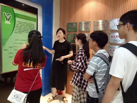 在了解了无锡市垃圾分类与处理的状况后,暑期社会实践小分队在侯玉莹老师的指导下,前往垃圾处理的终点——桃花山开展调研。无锡市设有多个垃圾大型转运站、生活垃圾焚烧发电厂,桃花山垃圾填埋场就是无锡市垃圾的一个终端集中处理中心。桃花山垃圾填埋场被分为危险废物安全填埋场、危险废物焚烧厂、污水处理厂、填埋气体发电厂、渗滤液处理厂等多个区域,生活垃圾以焚烧为主,填埋为辅,已被填埋饱和的区域已开始进行复绿处理,桃花山还设有教育基地,陈列有很多由废弃物制作的物品,用奇思妙想将废弃物进行重新改造,使其变成有用的好物,切实做到安全处理,废物利用,响应习近平主席的“垃圾分类就是新时尚”的号召。暑期社会实践小分队在与讲解员的交谈中了解到无锡市的垃圾产量在以惊人的速度增长,从2014年的年填埋49万吨到2016年的年填埋89万吨,到现在每年以倍速增长。现每天共处理生活垃圾超过500吨,自1994年起现已填埋超过1000万吨,填埋高度已达到70米,夏天垃圾产量高的时候一辆辆垃圾车从上午排队至下午等待填埋,垃圾产量逐年增加,填埋场接近饱和状态,填埋场也在想方设法扩大填埋区域,以确保及时将市内垃圾处理。