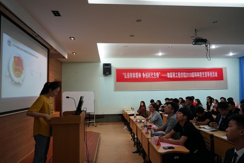 团支部争创答辩结束后,江南大学特称团支部标兵微电子1701瞿秋白特称团支部的团支书乌绮,为同学们分享和展示特称团支部标兵的底蕴与内涵,她重点分享了如何更好、更实、更细的开展好团支部的建设各项工作,如何引领支部团员以习近平新时代中国特色社会主义思想武装头脑,将新思想入脑、入心、入实践,并鼓励2018级的团员青年们发扬特称精神,作新时代的自强不息的新青年,肩负起新时代青年应有的责任和担当。