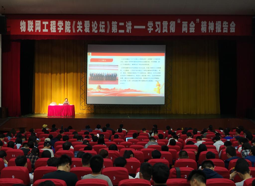 举行“我和我的祖国”关爱论坛,学习贯彻“两会”精神报告会在文浩馆观众厅举行。第十三届全国人大代表、全国机械工业劳动模范、全国三.八红旗手、江南大学建校60周年优秀校友、无锡威孚高科技股份有限公司汽车零部件事业部工程部经理赵伟就今年全国“两会”召开的盛况及新出台的重大政策作了精彩报告。本次活动由巅峰国际