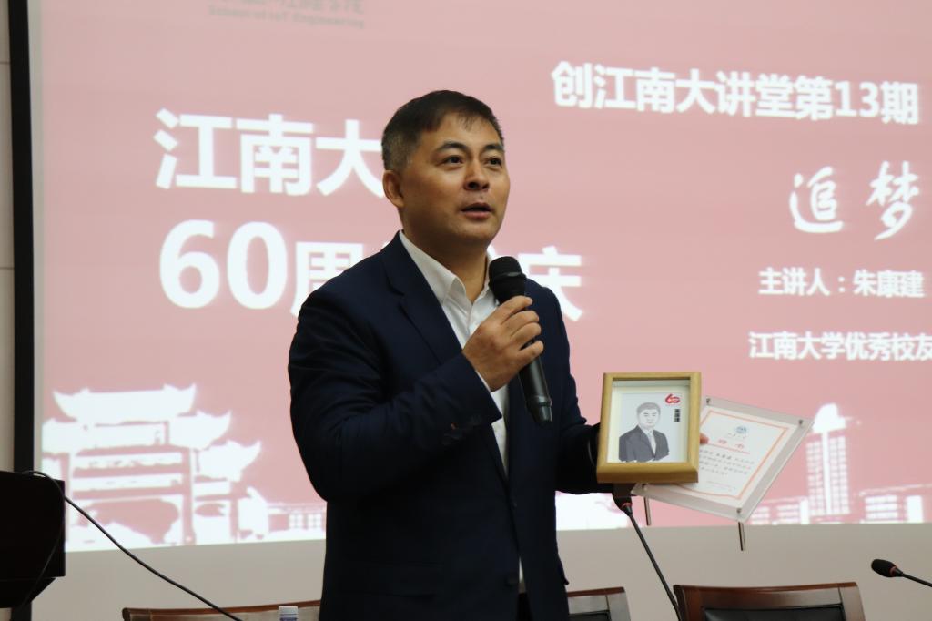 在讲座中,朱康建以一个学长兼前辈的身份,向同学们分享了自己的创业经验和人生感悟。首先,朱康建对刚刚过去的甲子校庆献上了自己的祝福,并表示,江南人站在一个甲子的开端,定会开创出一个更美好的未来。回首江南六十年的成长之路,朱康建回忆了自己的求学岁月,感慨之余,向同学们提出了一个十分深刻的人生问题:我们应该如何度过自己的人生。朱康建强调,作为一个中国人,我们的人生与“中国梦”息息相关。“中国梦”的实现对实现国家富强有着重要意义,这也为青年学子提供了更大、更宽广的舞台。追逐“中国梦”,每一个人的小梦想不可缺少。