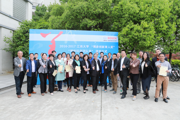 在颁奖环节中,领导和嘉宾们首先为获得“博世创新育人奖”的老师们颁奖,邢亮老师作为获奖教师代表,首先感谢了博世公司对于物联网学院教育工作的大力,并表示,物联网的老师们会再接再厉,为学院的发展和学生的成长贡献力量,用自己的一言一行,去引领学生走上成人、成才的道路。随后,获得“博世科创团队奖”的学生们上台领奖,刘伟华同学作为获奖学生代表感谢了博世公司对于科创团队的激励,物联学子将在今后的学习和工作中继续奋发拼搏,取得更加骄人的成绩。仪式的最后,全体老师和同学对出席本次活动的领导和嘉宾再一次表示热烈的欢迎和衷心的感谢,活动在一片掌声中圆满落下帷幕。